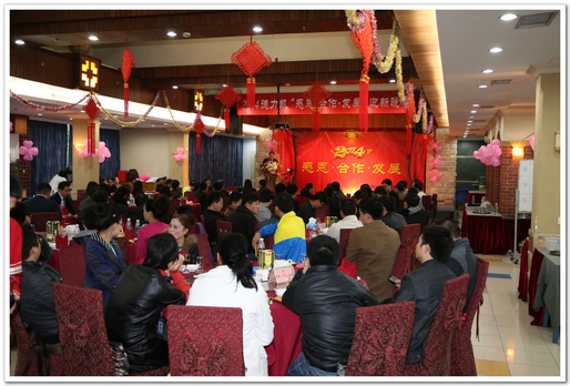 整場(chǎng)晚宴熱鬧非凡,桌桌觥籌交錯(cuò),處處歡歌笑語。各部門員工在一起舉杯慶祝2013年取得的成就,探討過去一年工作中遇到的問題,表達(dá)大家對(duì)新年的祝福與愿望。