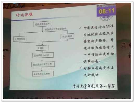 次日,吉林大學第一醫(yī)院邢英琦教授從研究背景、研究方法、研究結(jié)果、結(jié)論與展望四個方面同大家交流了當前的腦血管研究病熱點——“偏頭痛與右向左分流-一項全國多中心研究結(jié)果與展望”。報告中,邢教授展示了與德力凱公司合作研發(fā)的智能化發(fā)泡實驗軟件和正在審查中的專利成果“一種發(fā)泡實驗檢查的數(shù)據(jù)處理方法及系統(tǒng)”。同時為了深入研究右向左分流、偏頭疼與腦白質(zhì)病變的關(guān)系,邢教授邀請各位醫(yī)學同仁參加吉林大學第一醫(yī)院倫理委員會批準開展的中國偏頭痛患者腦白質(zhì)病變與右向左分流相關(guān)性研究。該研究為觀察性研究,從該研究中得到的信息將幫助醫(yī)生分析偏頭疼患者發(fā)生腦白質(zhì)病變的原因,為醫(yī)療相關(guān)部門制定偏頭疼患者預(yù)防及干預(yù)指南提供客觀依據(jù),獲得了在座專家的熱烈反響!