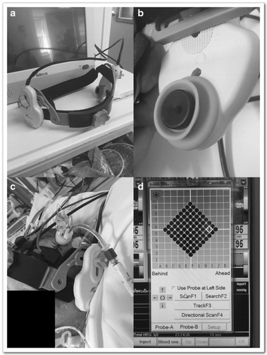 Finally, TCD assessment of MCA CBFV was conducted via a robotic TCD system,the Delica EMS 9D (Delica, Shenzhen, China, http://www.devorerealestate.net/html/en). This system allows for continuous extended duration recording of MCA CBFV, using 1.6 MHz robotically controlled TCD probes, with automated correction algorithms for probe shift.We aimed to record 3 to 4 h of continuous data from all devices simultaneously, given the previous work from our group on inter-index relationships focused on recording durations of only 0.5- to 1-h duration due to limitations of conventional TCD [22, 30]. Based on manufacturer specifications of the Delica robotic TCD system, the thermal index for the 1.6 MHz Doppler probes is less than 1.0, with the index less than 0.5 in most cases. As such, in keeping with the guidelines for adult TCD provided by the British Medical Ultrasound Society, the thermal index for the device is in the range acceptable for potentially Bunlimited^ TCD duration, while adhering to the principles of Bas low as reasonably achievable^(ALARA) [5, 12, 13]. Thus, there were no concerns with tissue heating as a result of the extended duration recordings using this system. Brain temperature, local or global, was not recorded in this patient cohort. Figure 1 displays the robotic TCD device and set up for recording in critical ill TBI patients.……