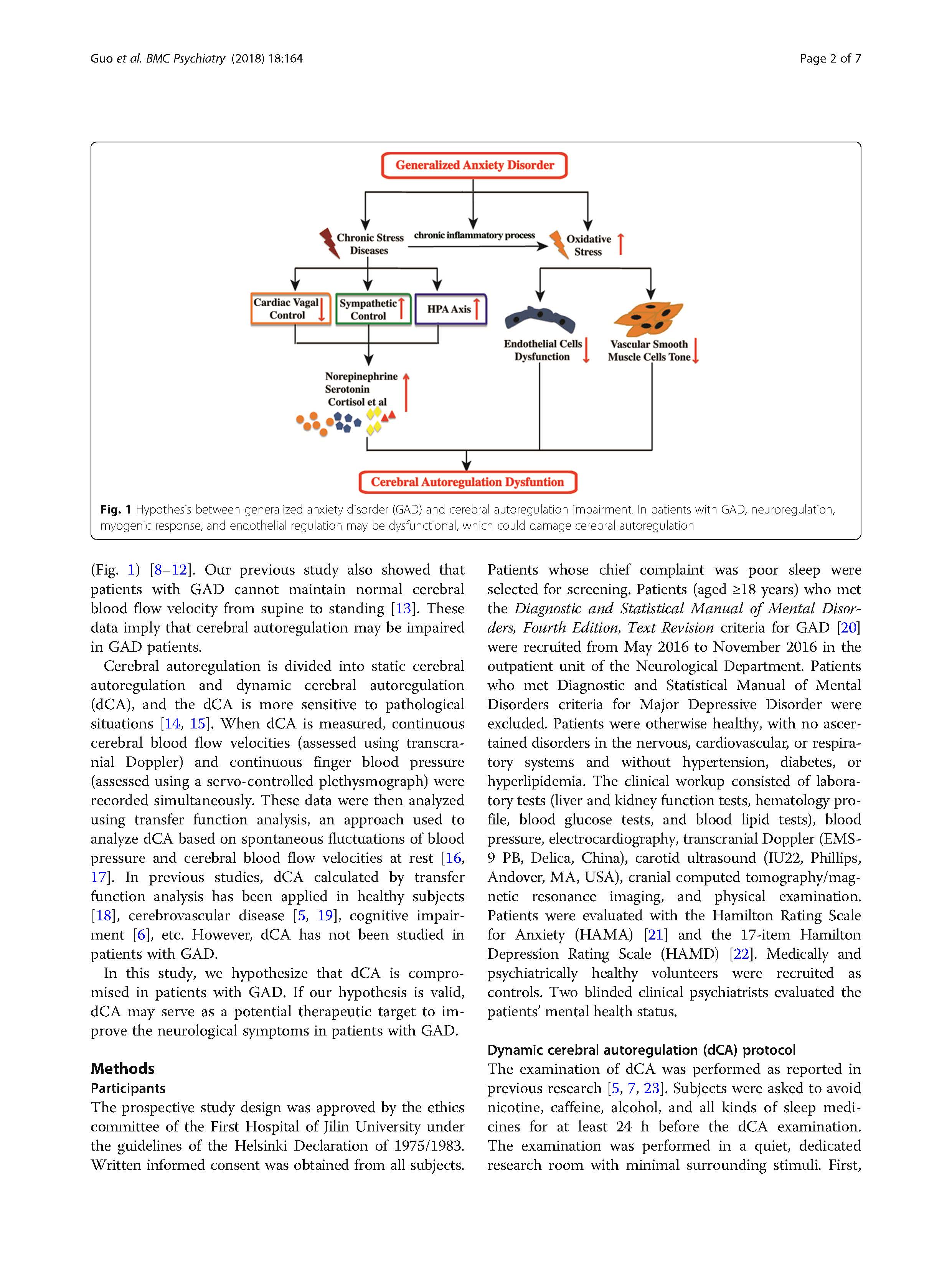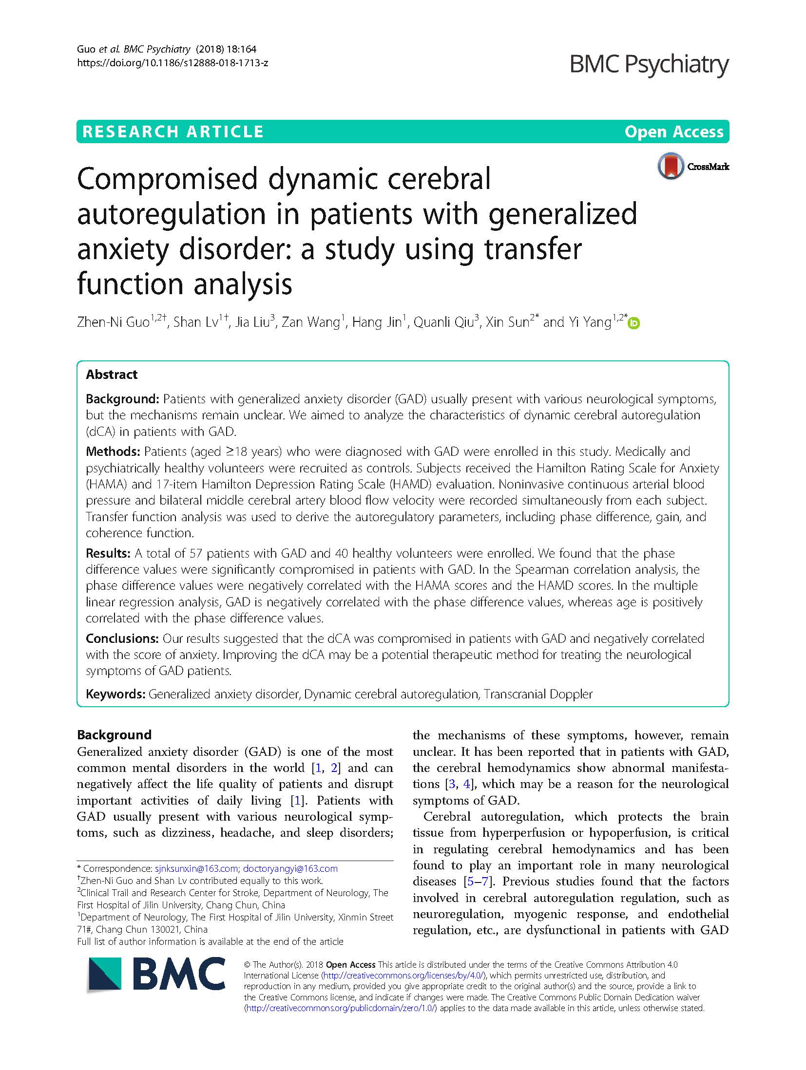 Compromised dynamic cerebral autoregulation in patients with generalized anxiety disorder: a study using transfer function analysis