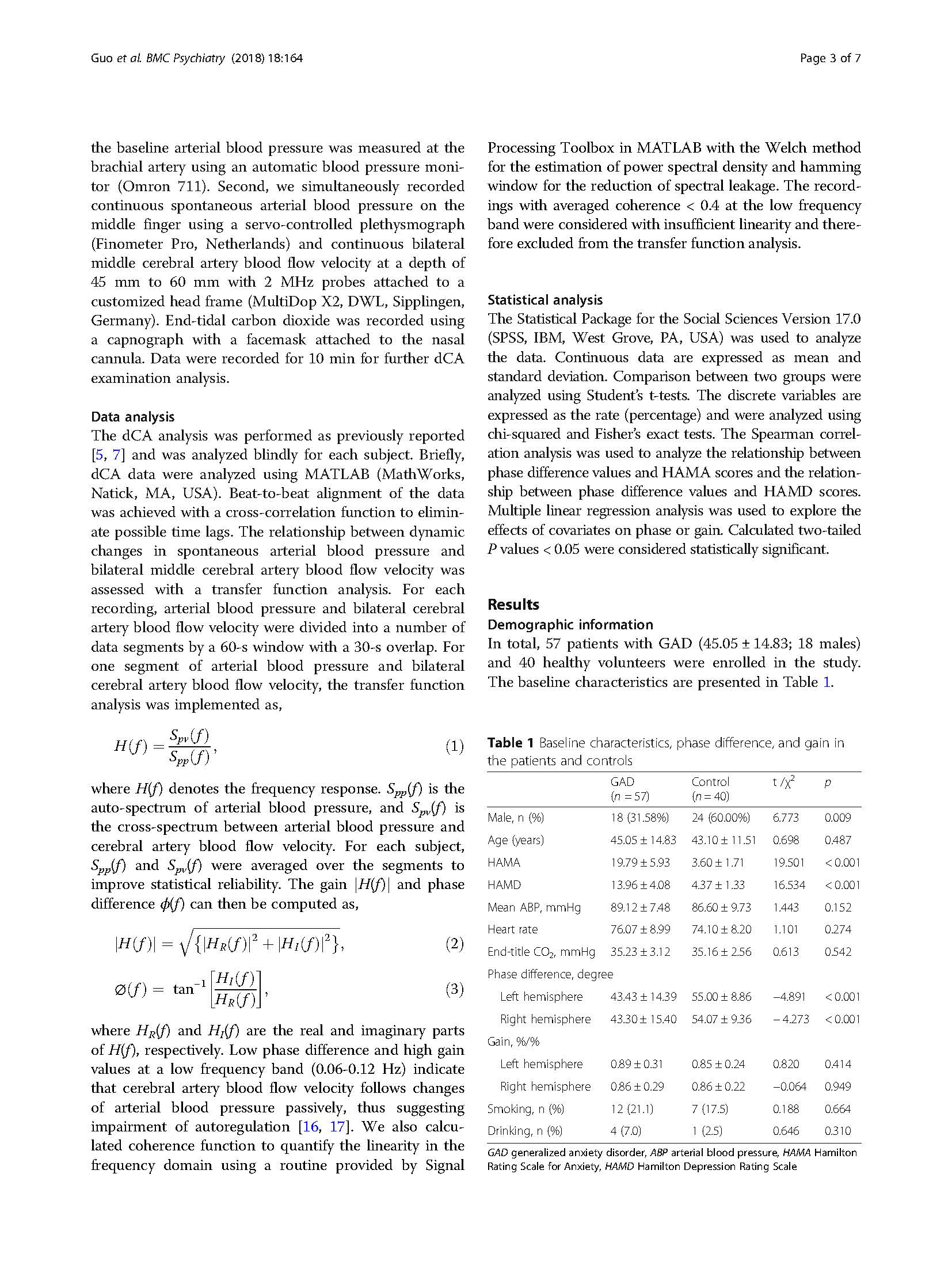 方法:被診斷為GAD的患者(年齡≥18歲)被納入本研究。招募醫(yī)學和心理健康志愿者作為對照。受試者接受漢密爾頓焦慮量表(HAMA)和17項漢密爾頓抑郁量表(HAMD)評估。每個受試者同時記錄無創(chuàng)連續(xù)動脈血壓和雙側大腦中動脈血流速度。